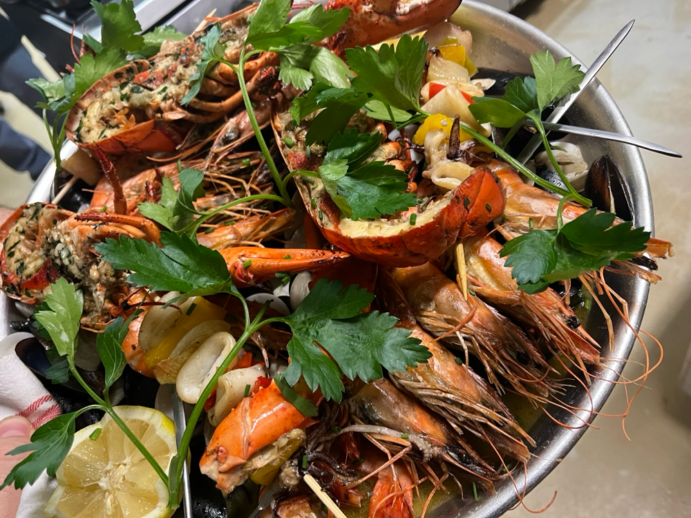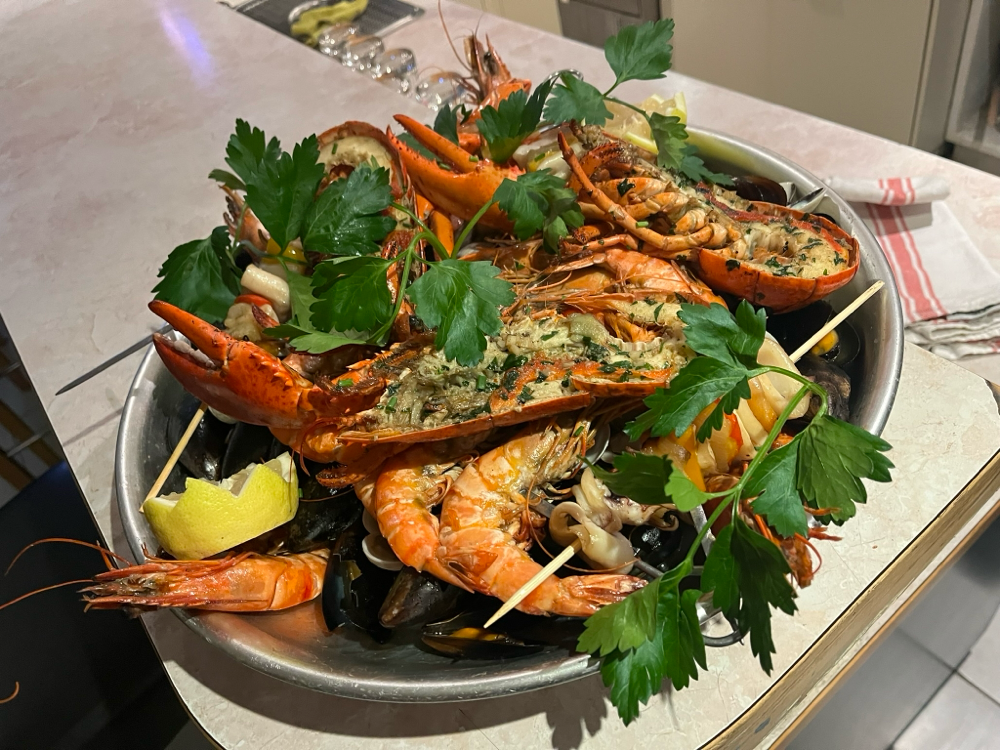 Nos plateaux de fruits de mer sont composés de moules cuites, palourdes, crabe farci, gambas géantes à la poêle,